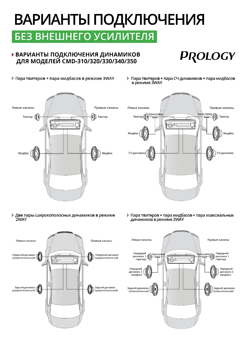 PROLOGY CMD-350 — FM / USB ресивер с Bluetooth® и встроенным DSP - аудиопроцессором, стандартного размера 1DIN, который обеспечивает прием радиостанций в диапазоне FM / УКВ / AM и воспроизведение медиафайлов MP3, WAV, и FLAC форматов, записанных на USB накопители, передачу звука с внешних источников через линейный аудиовход и беспроводной интерфейс Bluetooth®. Поддерживается управление мобильным телефоном через интерфейс Bluetooth® (ver. 4,2).
