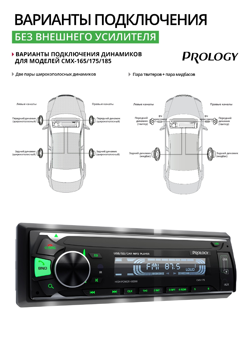 Примечание: *Функционал приложения зависит от модели автомагнитолы Prology. Поддержка приложения указывается в инструкции пользователя.