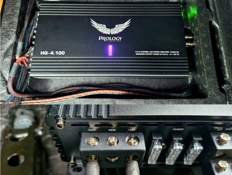 PROLOGY HQ-4.100 – 4/3/2-канальный усилитель мощности AB-класса. Мощность RMS (4/2 Ом): 4 x 100/170 Вт, мостовой режим (4 Ом): 2 х 350 Вт.
