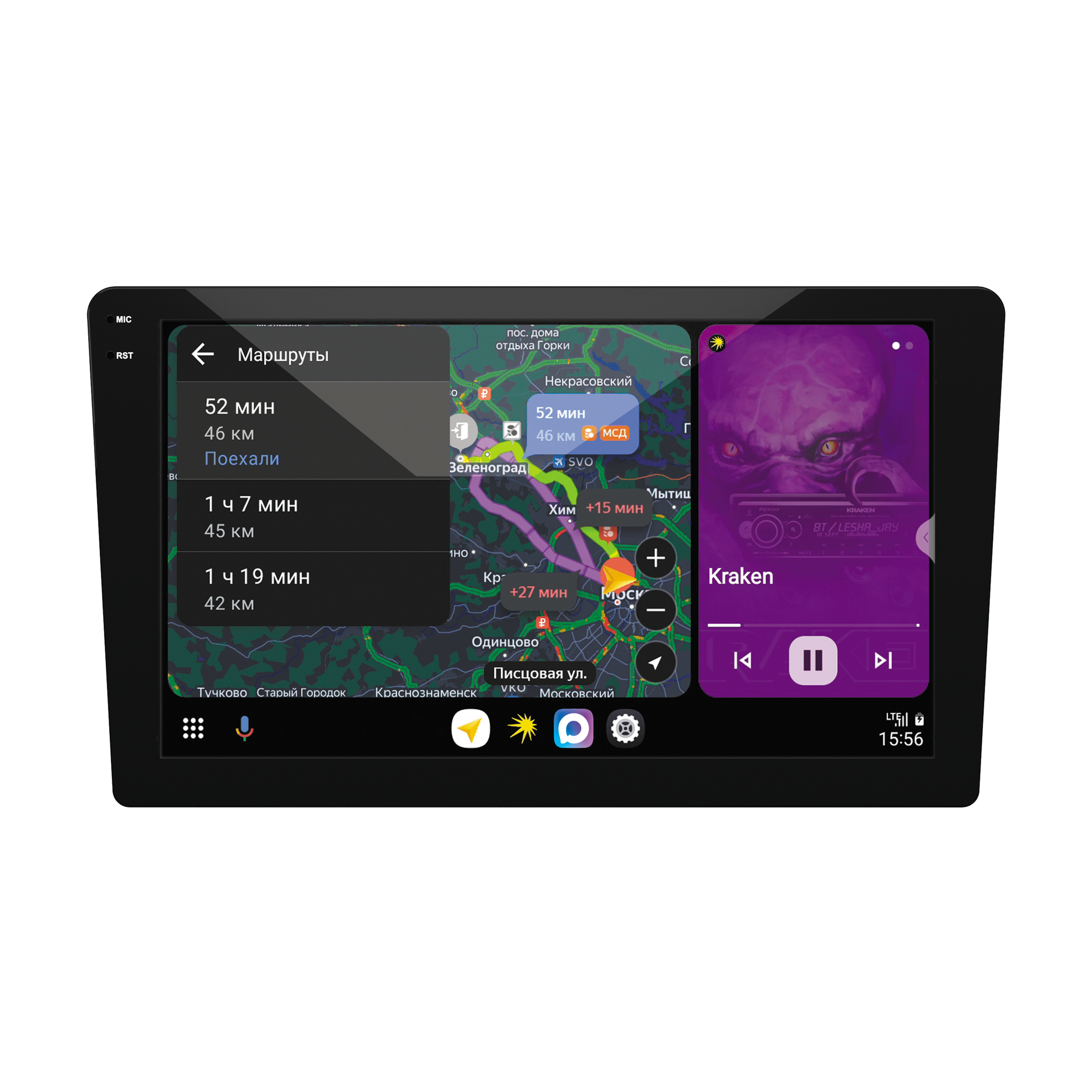 Скачивание и установка Android-приложений из официального магазина Google Play. Управление касанием экрана и кнопками на руле.